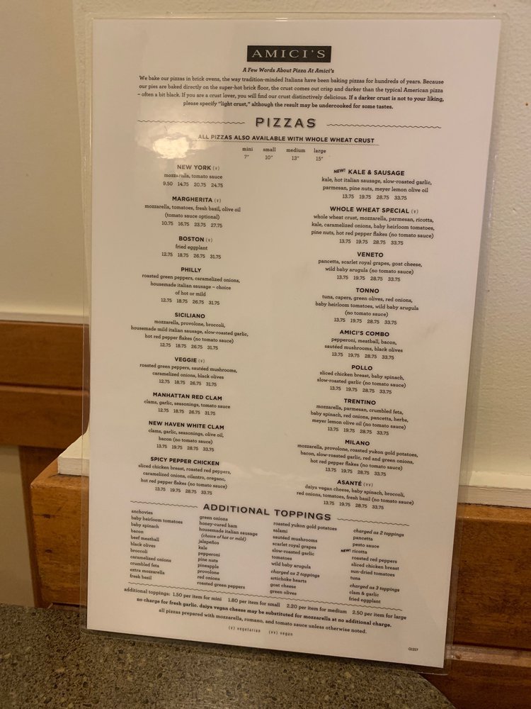 Introducing the menu at Amici’s East Coast Pizzeria, located in San Mateo, CA, offers a variety of catering options, including salads such as Garden Salad, Caesar Salad, Antipasto Salad, and Kale & Quinoa Salad. The pasta selections feature Build Your Own Pasta, Linguine with Marinara, Fettuccine Alfredo, Four Cheese Lasagna, and more. The reviews from customers highlight the exceptional quality of the Italian dishes served here, with one customer praising it as the best they have ever had outside of authentic Italian neighborhoods. Amici’s is known for its delicious pizza, resembling the New York style, making it a favorite among customers in the Bay Area. The menu also includes vegan and vegetarian options, catering to a diverse range of preferences. With great service, a welcoming atmosphere, and delectable dishes, Amici’s East Coast Pizzeria is a must-visit for Italian food lovers.